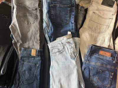 В связи с закрытием магазина распродаем джинсы , брюки , штаны разных фасонов и цветов по 250 рублей.