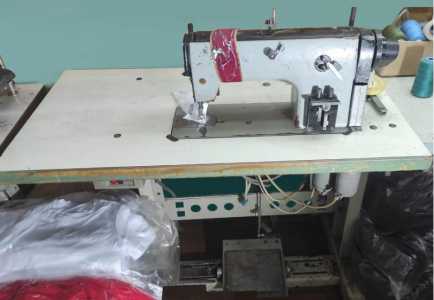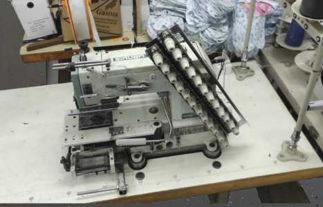 Поясная машина, в рабочем состоянии, имеет допы для подачи резинки и прочих лент