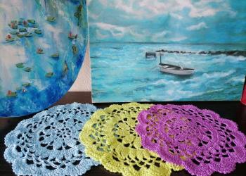 3 солфетки 19 см по 300 р. 1 бежевая с сердечками 19 см 400 р. Двух цветная объёмная, 24 см плотной вязки. 900 р.